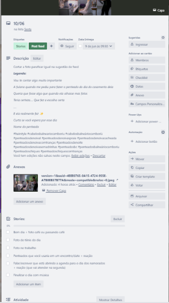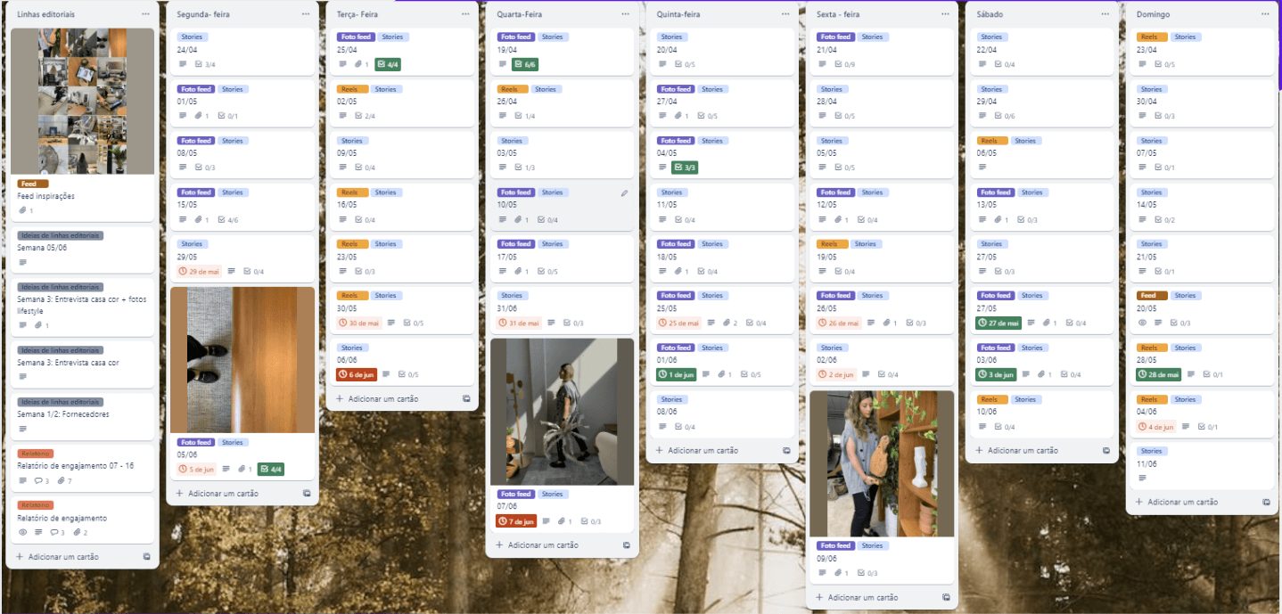 Conteúdo semanal, com checklist legendas e stories para serem feito.